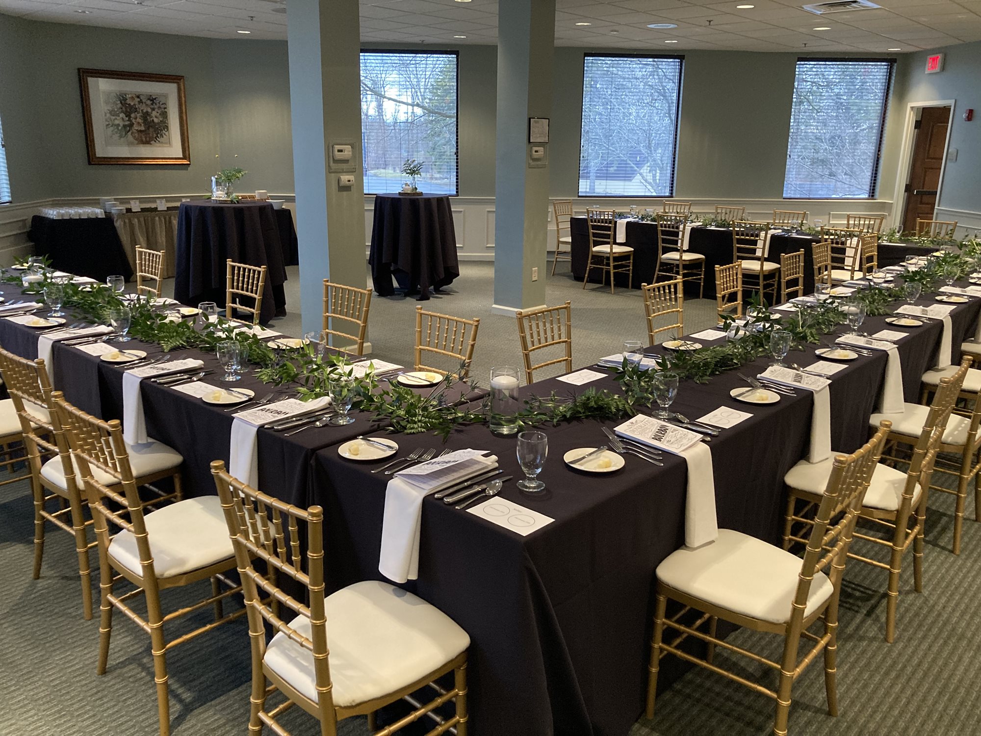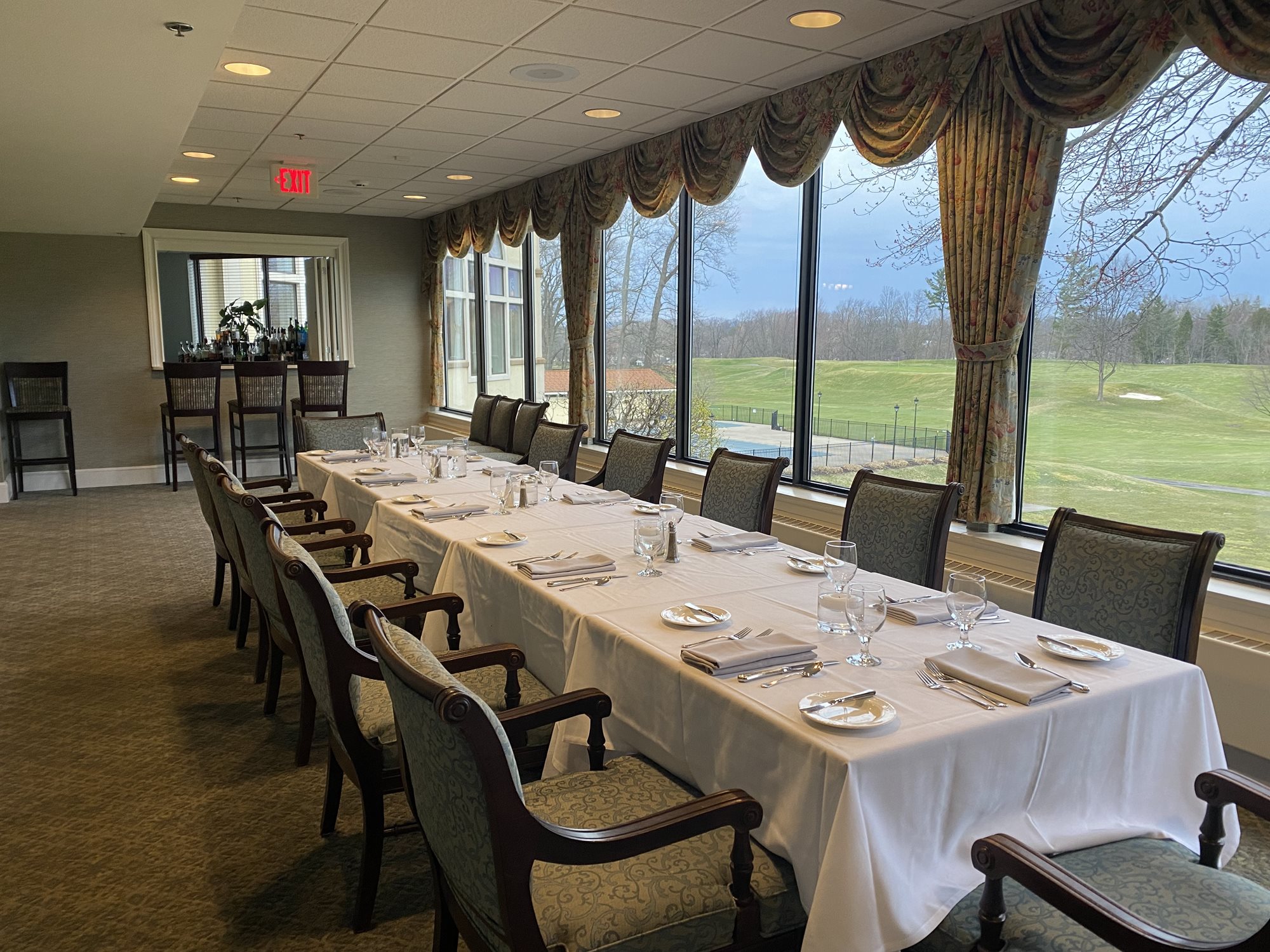 The Ball Room is able to accommodate up to 250 guests, and offers the most beautiful panoramic views of the golf course and grounds. It's a perfect space to host a special event or large gathering such as a wedding, bar/bat mitzvah or large corporate gathering.